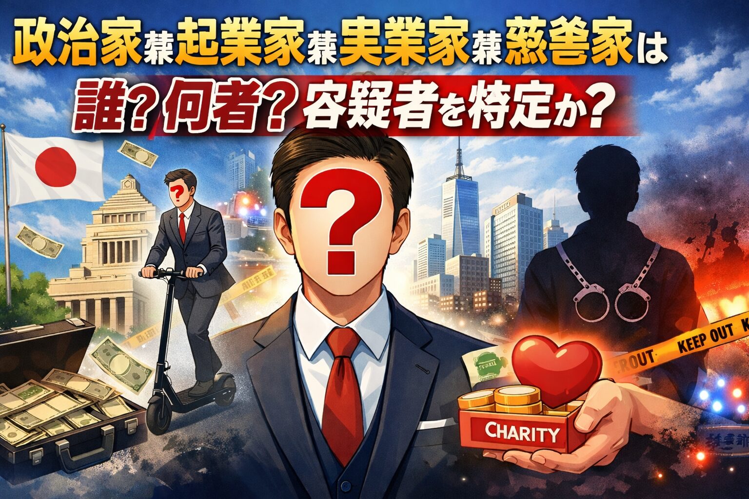 SNSやニュースで突然話題になった「政治家兼起業家兼実業家兼慈善家」という強烈な肩書き。