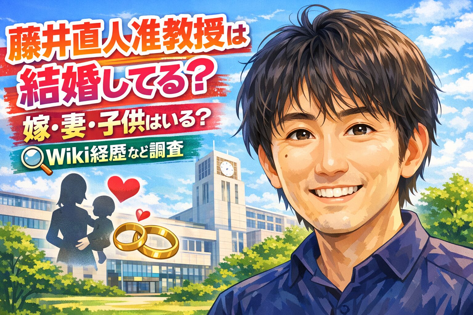 そこで本記事では、藤井直人准教授は結婚しているのか、嫁(妻)や子供はいるのかといったプライベート情報から、wiki風プロフィールや経歴、研究実績まで詳しく調査しました。