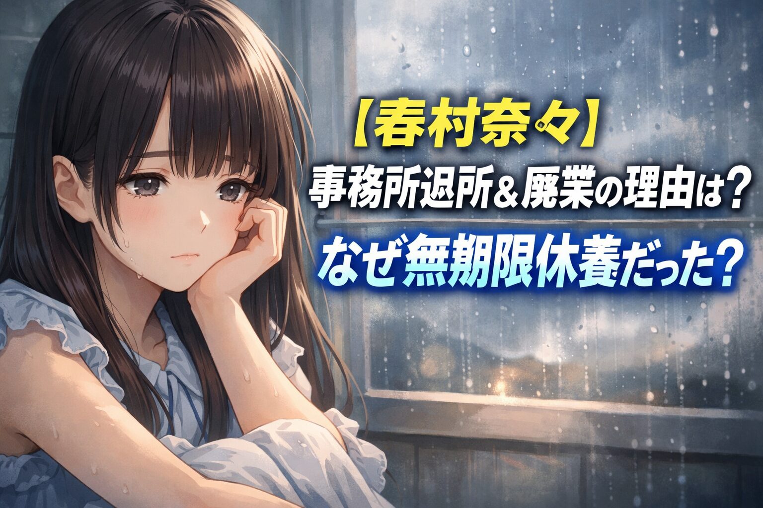 春村奈々さんの事務所退所・廃業の理由は、公式には「健康上の理由」とされています。無期限休養という形を取っていた背景には、回復時期が見通せない状況や、心身への配慮があったと考えられます。