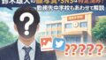 ネット上では、ミスコン出身・年齢・関西出身といった条件から特定を試みる動きも見られますが、いずれも確証はなく、報道機関も実名には一切触れていません。