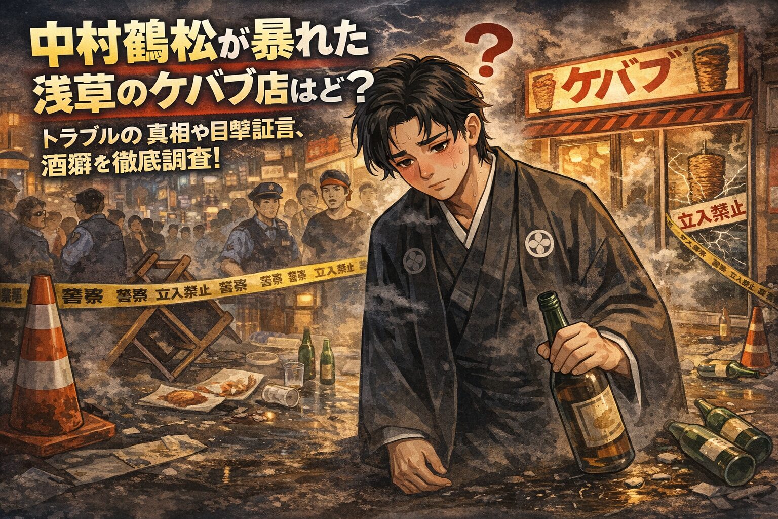 華やかな舞台で見せる凛とした姿からは想像もつかない今回の騒動。インターネット上では「一体どこのお店で何が起きたのか?」「普段から酒癖が悪かったのか?」といった疑問の声が相次いでいます。この記事では、事件の現場となったケバブ店の特定情報から、トラブルの詳しい経緯、そして中村鶴松さんの知られざる私生活や酒癖の評判まで、現時点で判明している事実を網羅的に解説します。